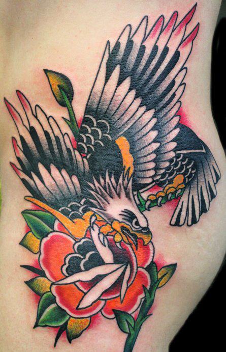 As you can see we worked on a clean area. The eagle is most often depicted in flight with its wingspan outspread or in the midst of catching its prey with its talons ready to strike. Traditional style eagle tattoos are a great design idea because the outlining and detailing of the old school style highlights the full plumage and dimensional coloring of the bird. You can see our time lapse videos. It features minimal color but an almost over the top cartoonish quality.The eagle and rose are pitted against the sparrow and lotus while a sword pierces a heart as the centerpiece. We upload 3 videos per week. Back with another tutorial. The traditional pinups tattoos. The traditional skull is one of the most popular tattoos and it is mainly used to represent death.
